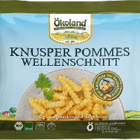 Enjoy Ökoland fries in 100% Ökoland quality. The special wave cut guarantees you a particularly intense and crispy taste experience. The fries are freshly cut from whole organic potatoes. They are pre-fried and unsalted for individual seasoning. Whether as a side dish or as a classic meal with ketchup or mayonnaise - Ökoland Crispy Fries can be served in a variety of ways.Note: Dextrose leads to a uniform coloring, the amount added corresponds to the carbohydrates lost in the washing process.